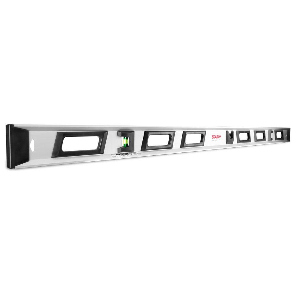 Précision de mesure maximale en mesure normale et inversée Grand profilé en aluminium extrêmement robuste en I pour une stabilité maximale Grâce aux fioles de précision très sensibles, le moindre écart est affiché clairement Meilleure lecture, plus rapide et plus précise grâce aux fioles brevetées SOLA FOCUS Fioles blocs en verre acrylique résistantes à la rupture avec lentille grossissante (+60 %) et une garantie de 30 ans sur l'étanchéité Poignées intégrées pour un confort de travail supérieur